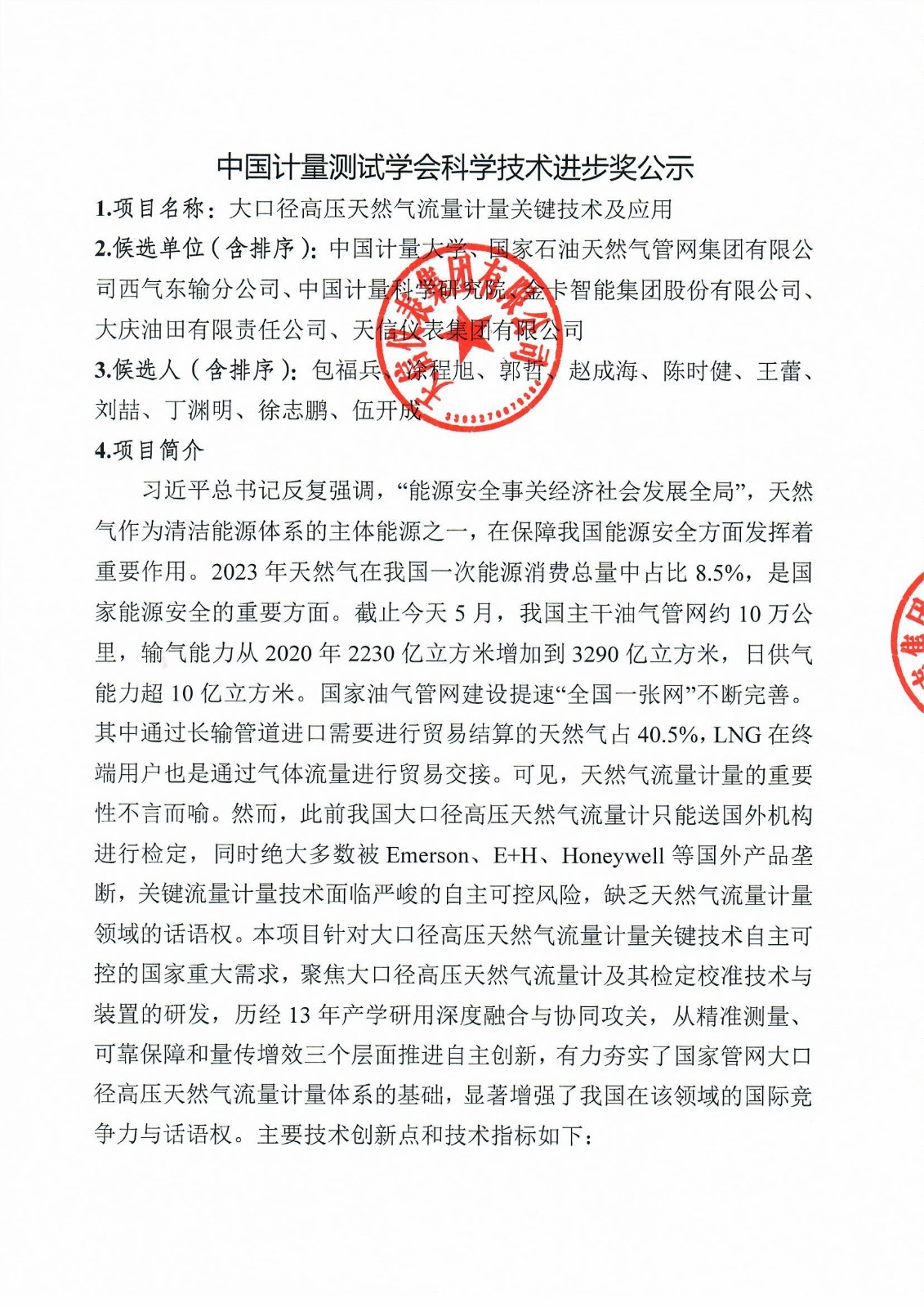 中國計(jì)量測試學(xué)會科學(xué)技術(shù)進(jìn)步獎(jiǎng)公示